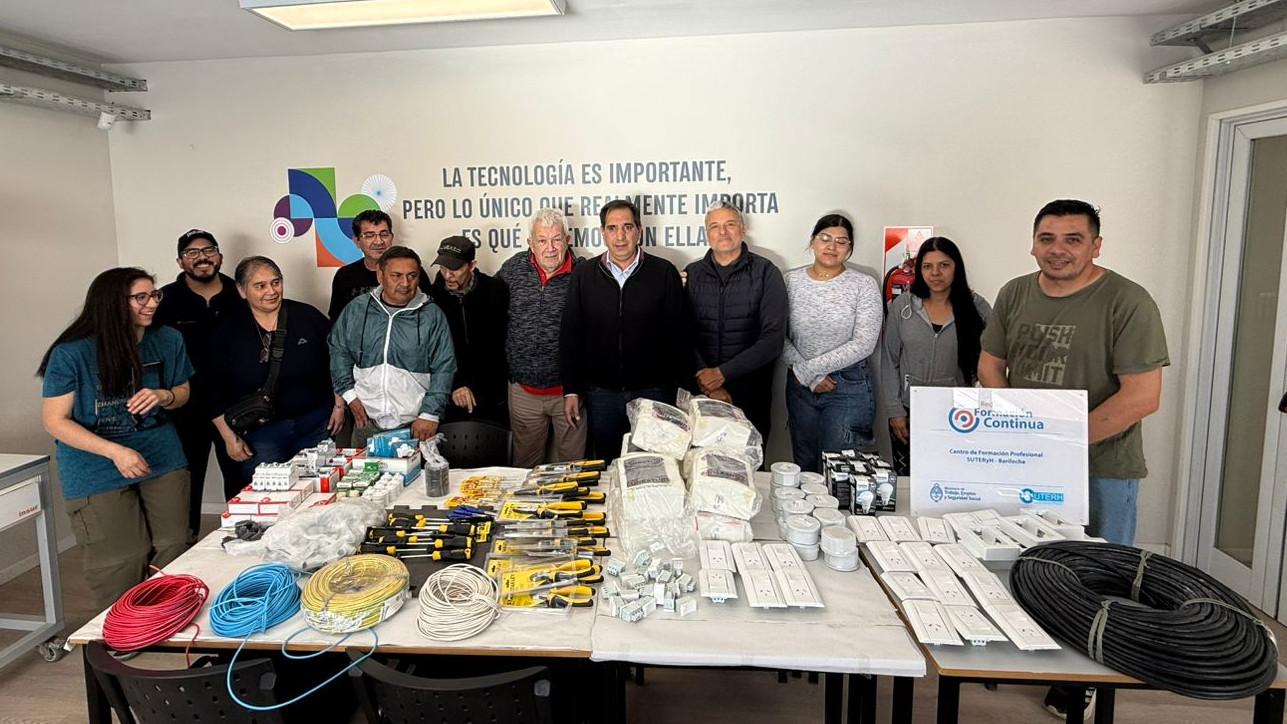 Vecinas y vecinos de Bariloche dieron un paso firme hacia la profesionalización en oficios al recibir los kits y materiales correspondientes al curso “Electricidad Básica Domiciliaria y de Porteros Eléctricos”, una capacitación organizada por la Secretaría de Trabajo, la Municipalidad local, el Centro de Formación e Innovación para la Construcción (CIFIC) y el SUTERYH Río Negro.