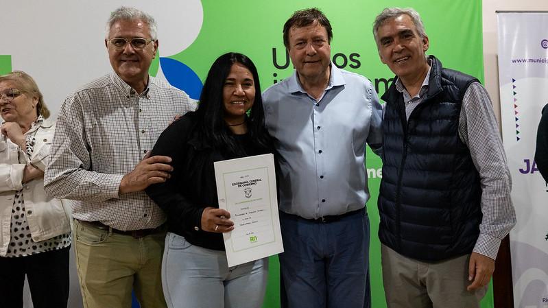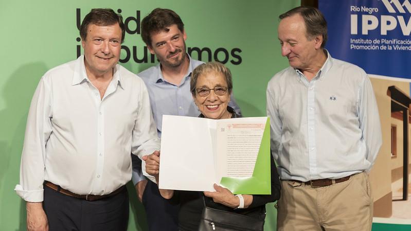 En el marco del 122° aniversario de Cipolletti, el Gobernador Alberto Weretilneck y el Intendente Rodrigo Buteler entregaron 60 escrituras de viviendas a familias de la ciudad, consolidando el derecho a la propiedad y brindando seguridad jurídica. También se realizó un reconocimiento a los escribanos públicos de la provincia en su día.