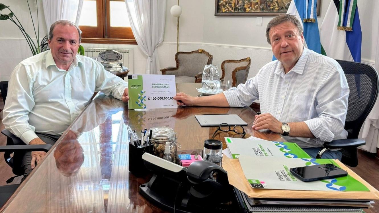 En la previa del aniversario de Luis Beltrán, el Gobernador Alberto Weretilneck se reunió con el Intendente Robin del Río y confirmó un aporte provincial de $100 millones para ejecutar obras de pavimentación que mejorarán la infraestructura y la circulación en la ciudad.